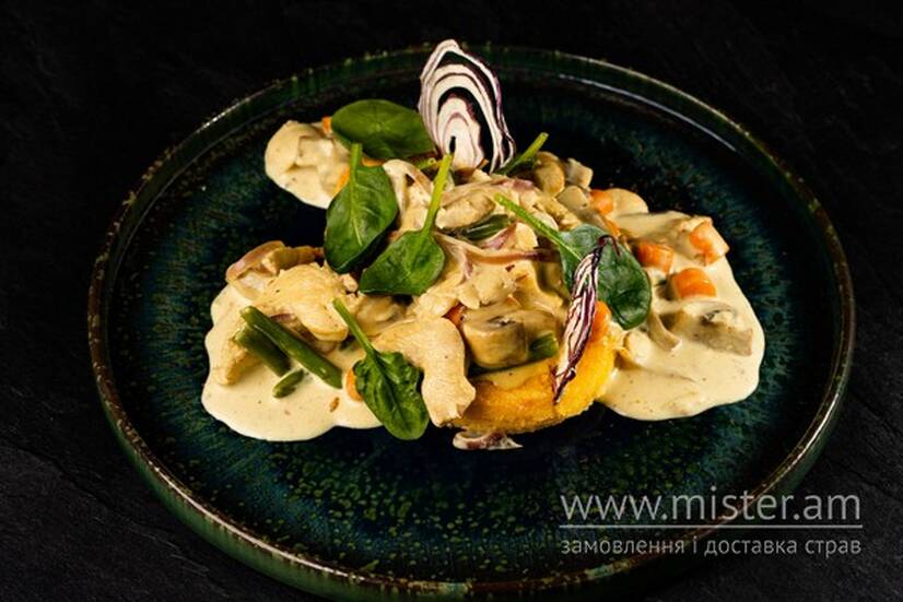 З куркою, бейбі морквою, стручковою квасолею на вершковій основі.