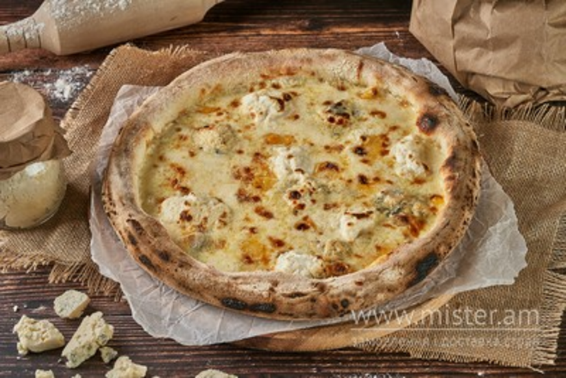 Вершковий соус, сир моцарела, сир рікота, сир гауда, сир горгонзола, сир пармезан.