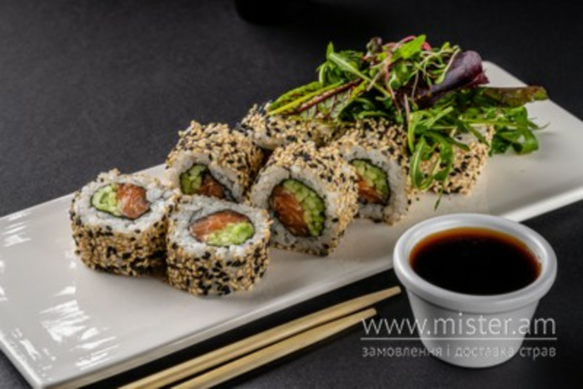 Рол "Каліфорнія максі" з лососем в кунжуті (8 шм.)