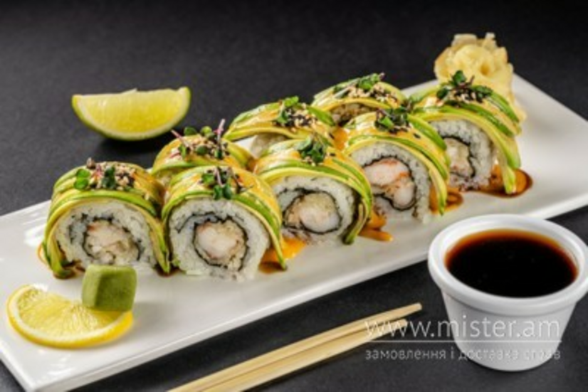 Рол від шефа. Зелений Дракон з креветкою темпура (8 шм.)