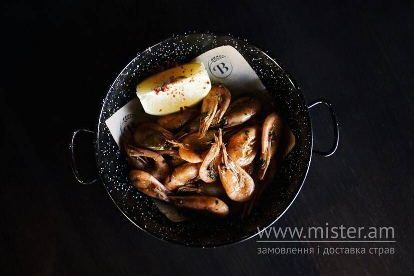 Креветки обсмажені у білому вині з часником та соусом "Гамбас".