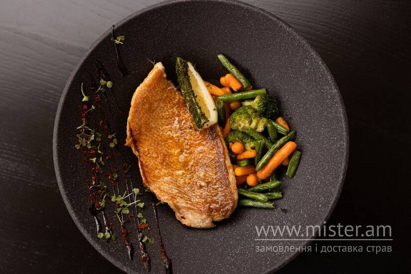 Морський окунь з овочами