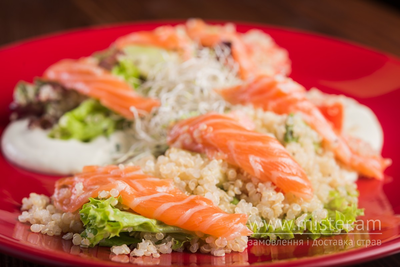 Burger Pizza Loft Салат з лососем кіноа, авокадо та мусом