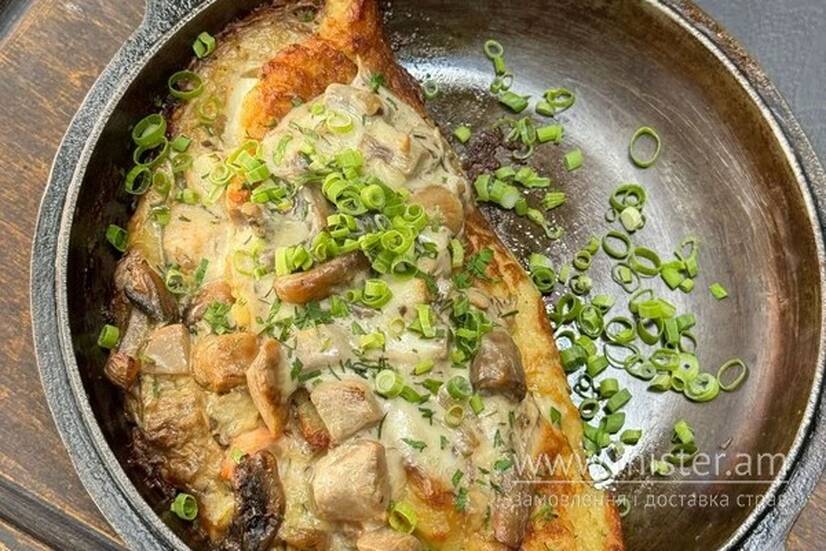 Куряче філе з вершково-грибним соусом з білих грибів та печериць. Соуси на вибір: сметано-часниковий/сметана.
