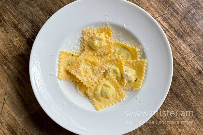 Равіолі з додаванням шпинату, пармезану, рікоти та цибулі.