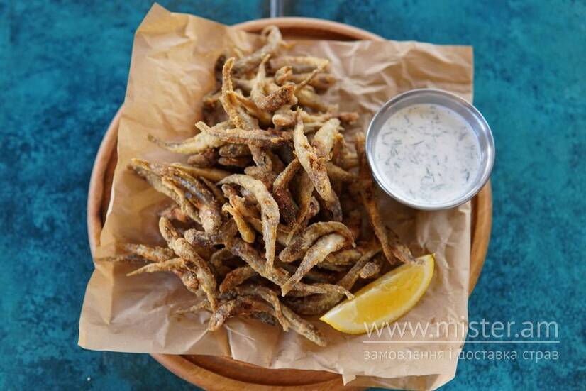 Риба: Корюшка, Фаршированна риба, Барабулька, Філе дорадо з птітімом , Кефаль з овочами вок, Стейк з тунця та Аспарагусом, Філе сома з аспарагусом, Філе дорадо з молодою картоплею, Карасі смажені , Смажений короп, Сібас з овочами гриль, Стейк з лосося на подушці з печериць