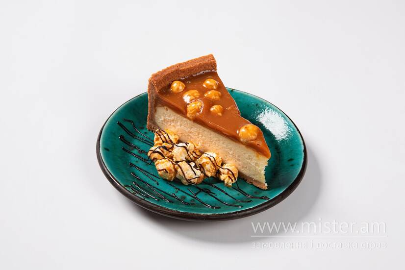 Вершковий сир, печиво до кави, карамель, горіхи фундук, попкорн карамельний, топінг шоколадний.