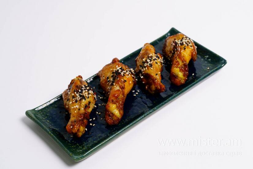 Крила в медово-гірчичному соусі. Посипаються кунжутом.