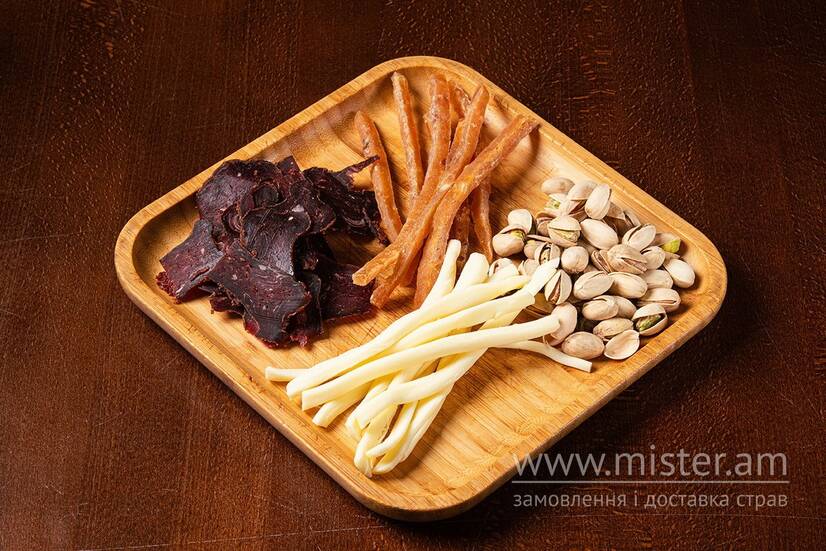 Сир косичка, фісташки, бастурма, риба ставридка.