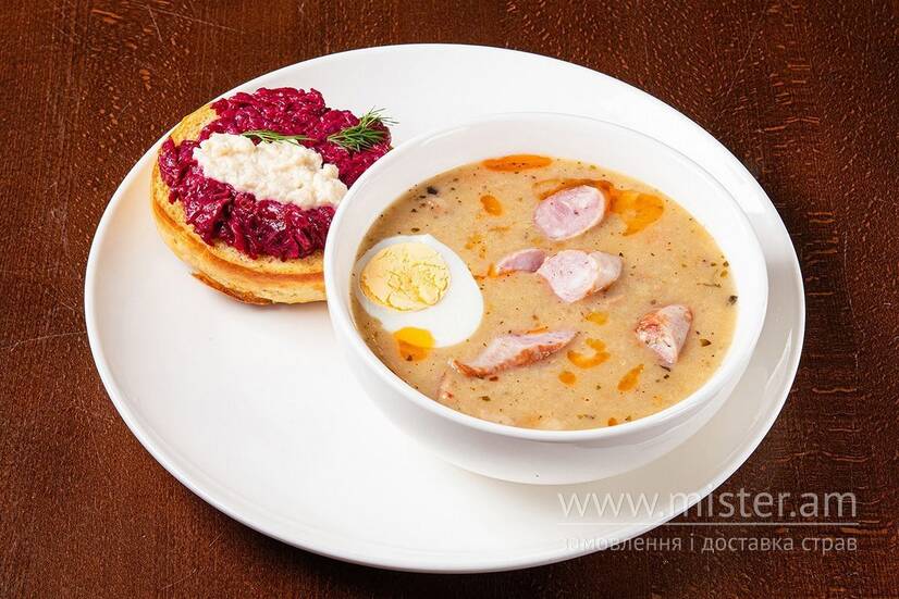 Польський Журек з ковбасками та курячим яйцем