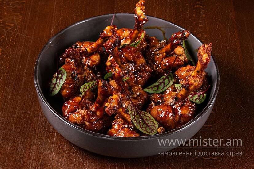 Курячі крильця з соусом на таці