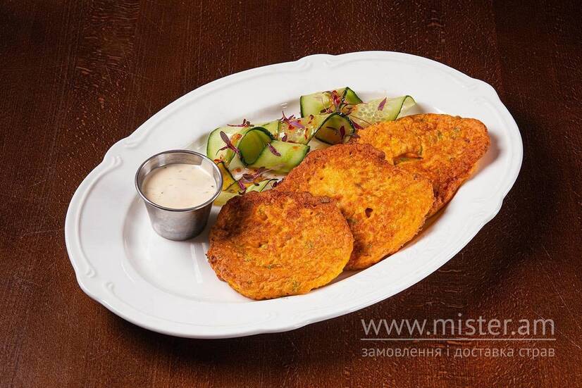 Гарбузові деруни з зеленим соусом