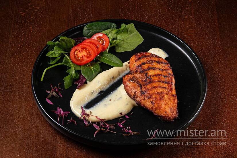 Стейк з курячого філе з вершковим блю соусом