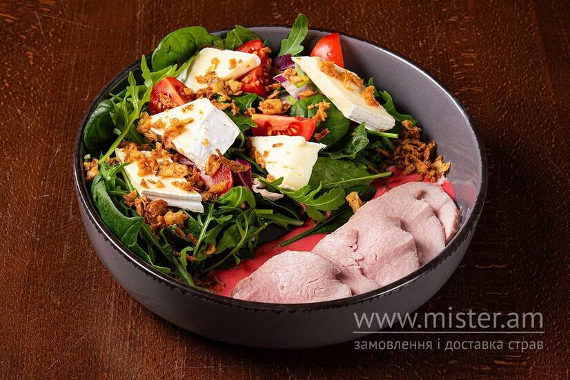 Салат з ніжної телятини з сиром Брі та фірмовим соусом