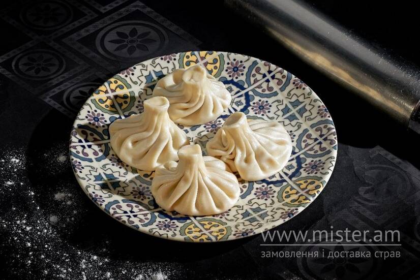 Мішечки із тіста із начинкою телячого фаршу та бульйону, приправлені спеціями та із зеленню кінзи.