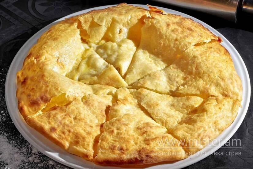 Хачапурі круглої форми з сирною начинкою-класика грузинського столу.