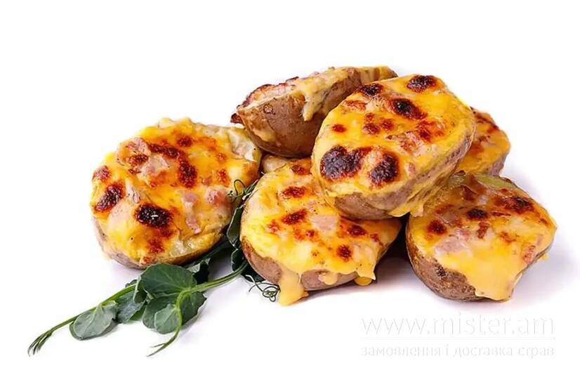 Картопля, майонез, бекон, сир тостерний, сіль, часник, петрушка.