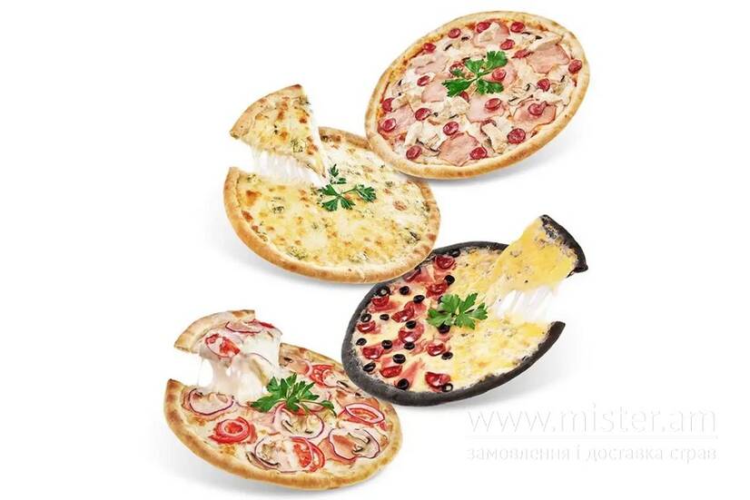 Баварська 30 см, 4 сири 30 см, Два хіта 30 см, Неаполітано 30 см.