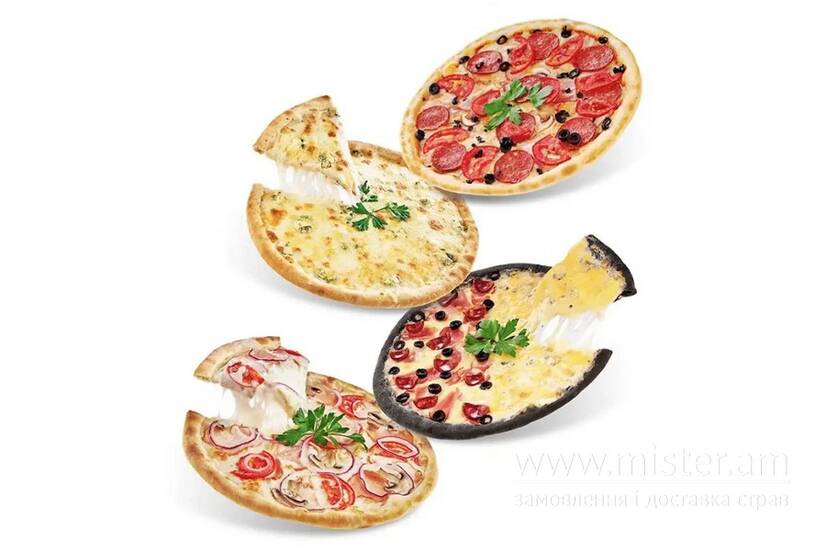 Царська 30 см, 4 сири 30 см, Два хіта 30 см, Неаполітано 30 см.