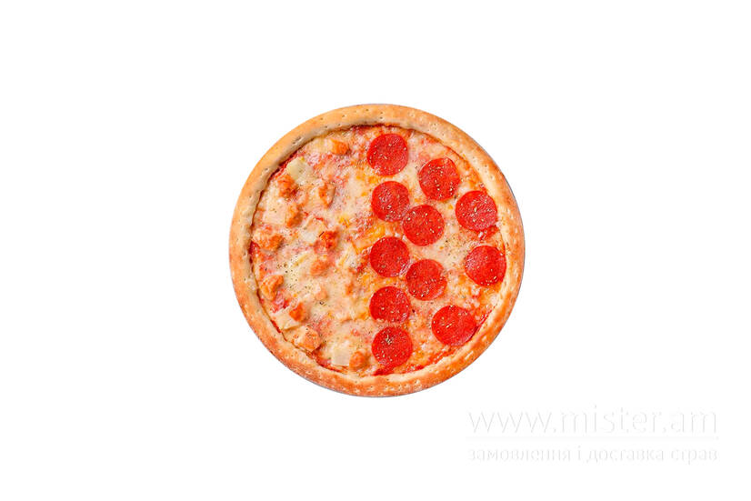 Пепероні, куряче філе, ананас, моцарелла, орегано.