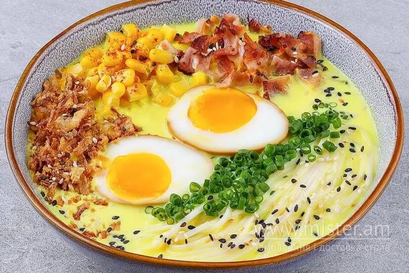 Сирний рамен із беконом