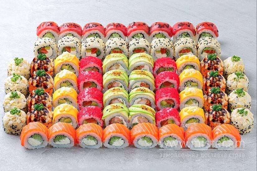 Філадельфія classic, Сирна Філадельфія, рол King Dragon, рол із кальмаром, рол Тайгер, рол Каліфорнія з лососем, рол Гейша, рол Аляска.