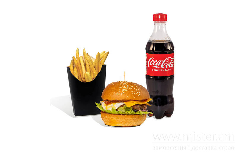 Разом дешевше (-5%)!!! Складається з: бургер Еспада, картопля фрі (M), напій 0,5 л на вибір.