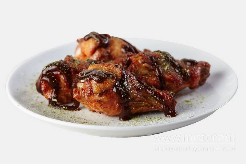 Соковиті і ніжні курячі рильця приправлені соусом Барбекю та присипані запашною сухою петрушкою.