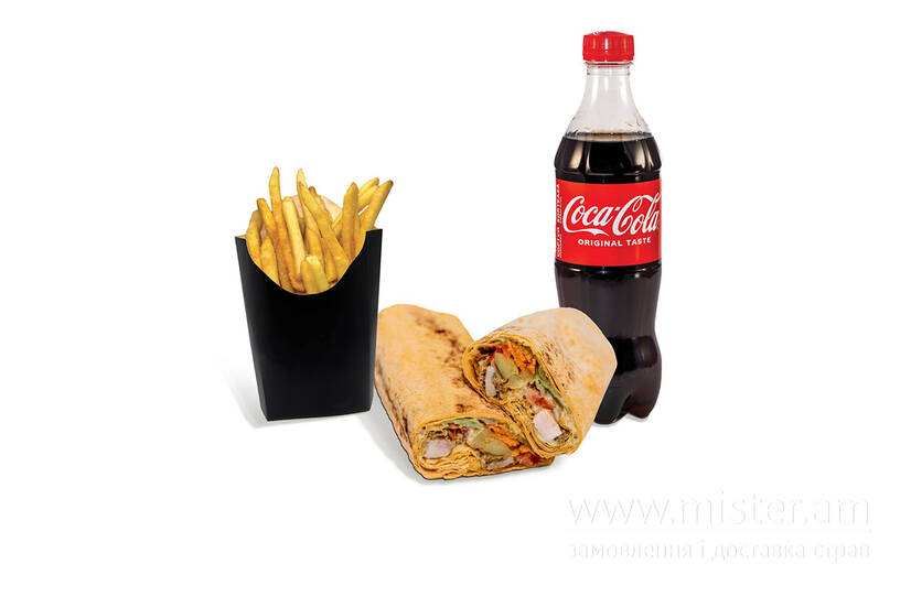 Разом дешевше (-5%)!!! Складається з: кебаб Атланта з куркою, картопля фрі (M), напій на вибір.