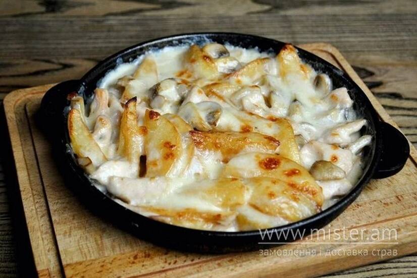 Картопля з куркою та печерицями