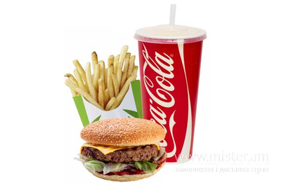 В меню дешевше!!! (-10%). Складається з: бургера Ель-Торро, картопля фрі велика, напій 0,5 (Кока-Кола/Фанта/Спрайт).