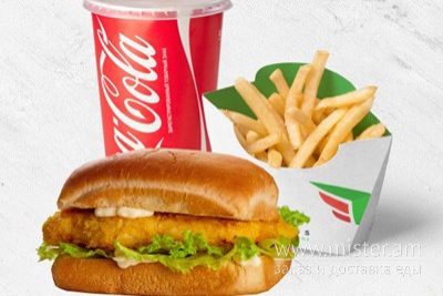 В меню дешевше!!! (-10%). Складається з: бургера Веселий роджер, картопля фрі велика, напій 0,5 (Кока-Кола/Фанта/Спрайт).