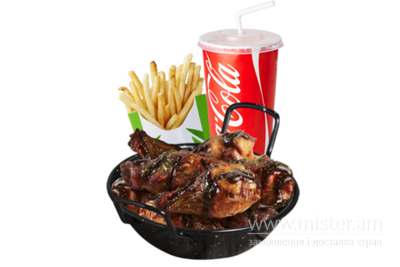 В меню дешевше, -10% !!! Складається з крильця по-техаськи 10 шт, картопля фрі велика, напій 0,5 (Кока-Кола/Фанта/Спрайт).