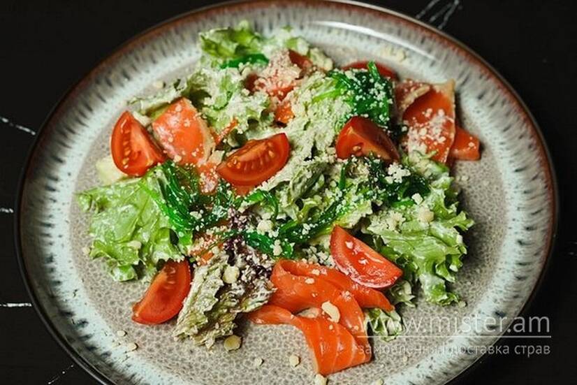 Салат з індичкою, кремом із вершкового сиру та апельсиновою заправкою