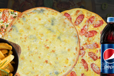 Піца "Салямі", піца "Папероні", піца "5 сирів", 2 порції картоплі по-селянськи, Pepsi 1 л.