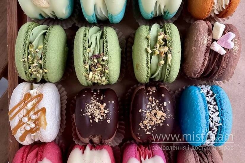 Повітряне печиво з мигдалевого борошна із м’якою начинкою на основі бельгійського шоколаду та вершків.