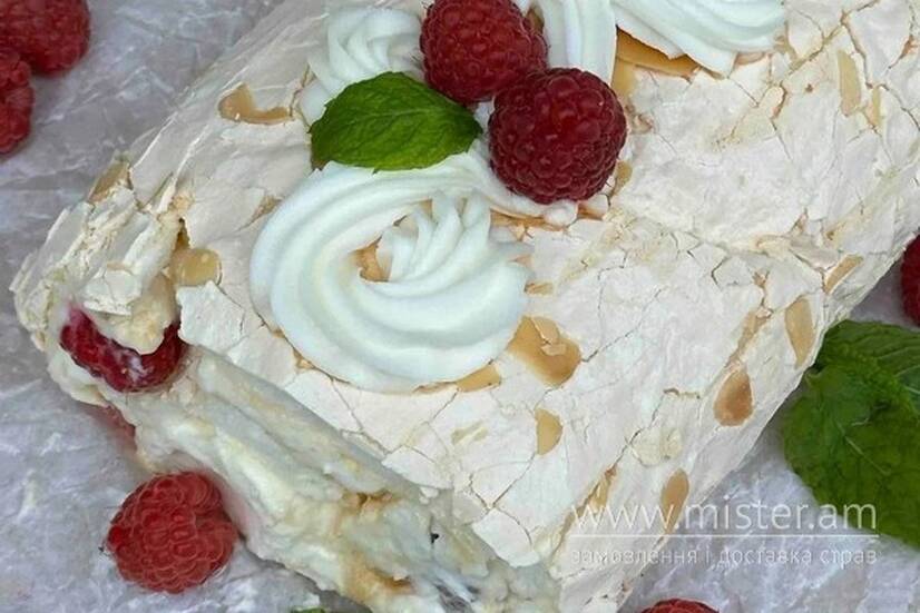 Млин Меренговий рулет з свіжою малиною та крем-чізом