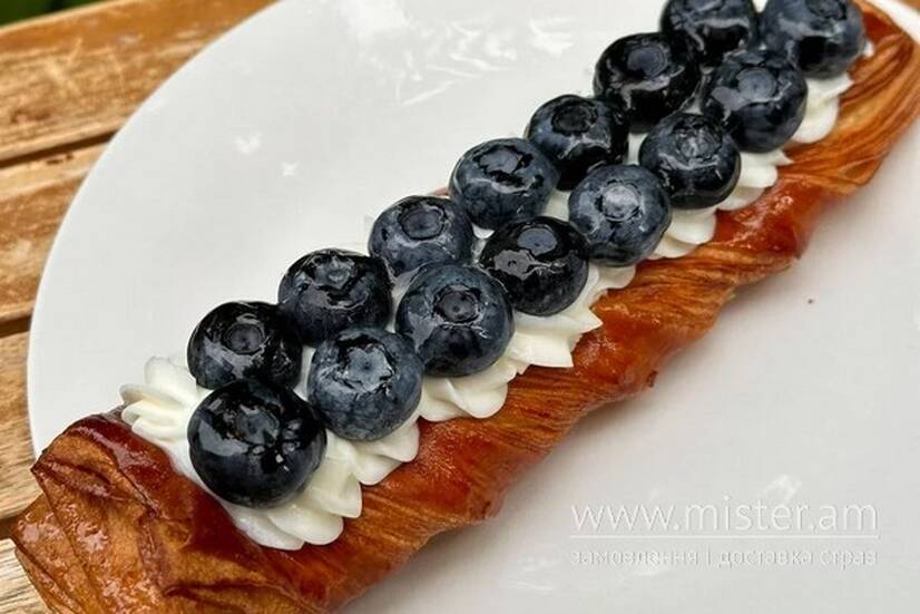 Кюлі з лохини, крем-чіз, крем патісьєр та сезонні ягодами.