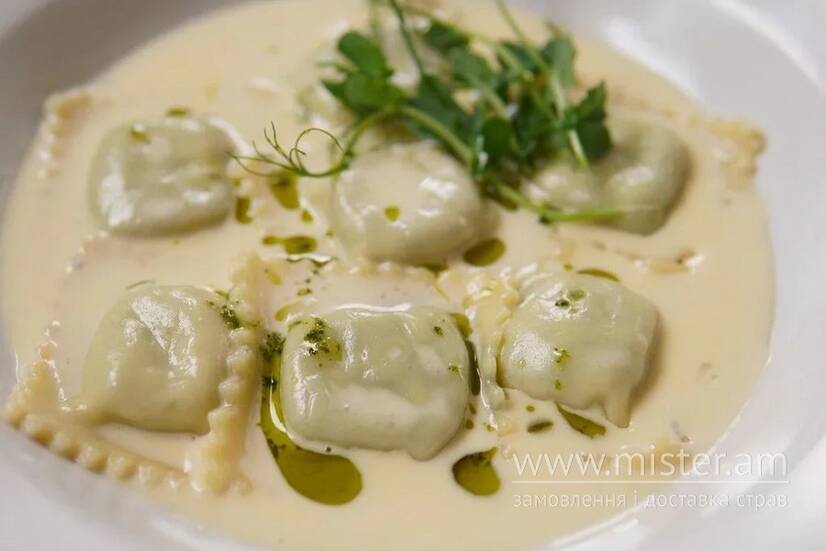 Равіолі з рікоттою та шпинатом під соусом Дорблю