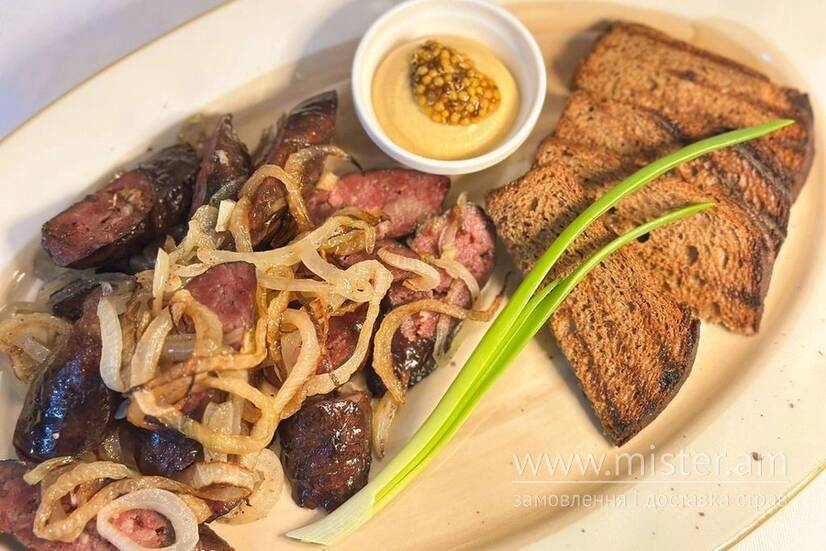 Подається з хрумкими грінками та гірчицею.
