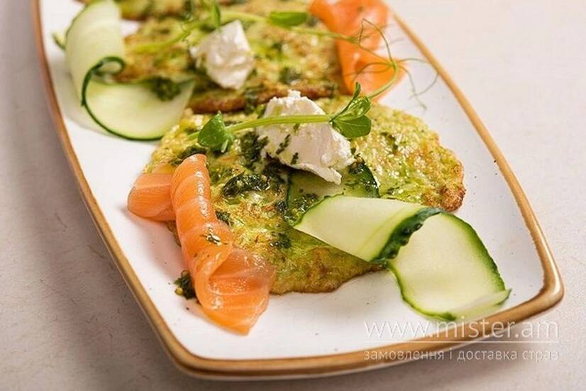 Кабачкові оладки з лососем та вершковим сиром