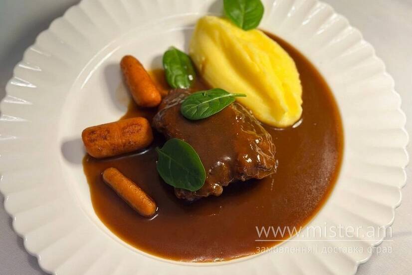 Томлена телятина з картопляним пюре та соусом Деміглас