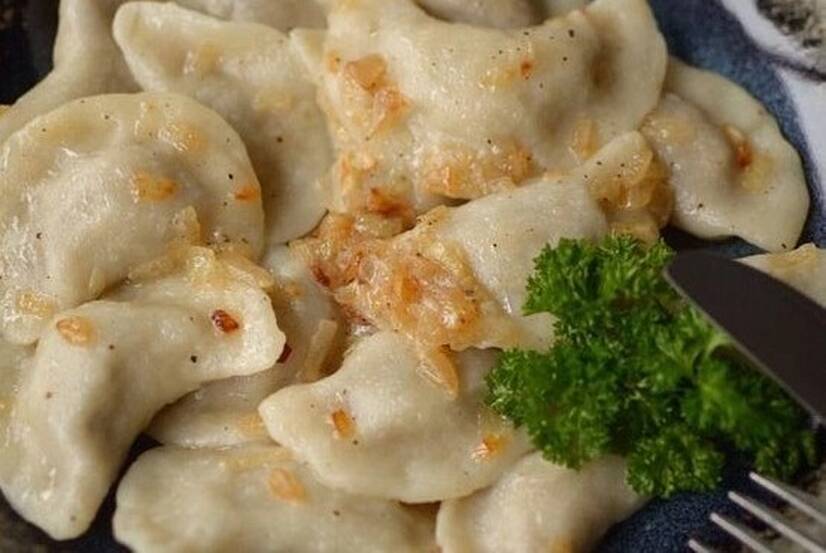 Вареники з капустою та смаженою цибулею