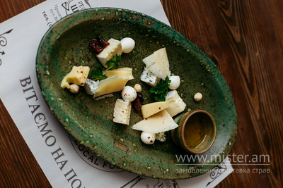 Моцарела, камамбер, мааздам, пармезан, дор-блю, мед, горіхи.