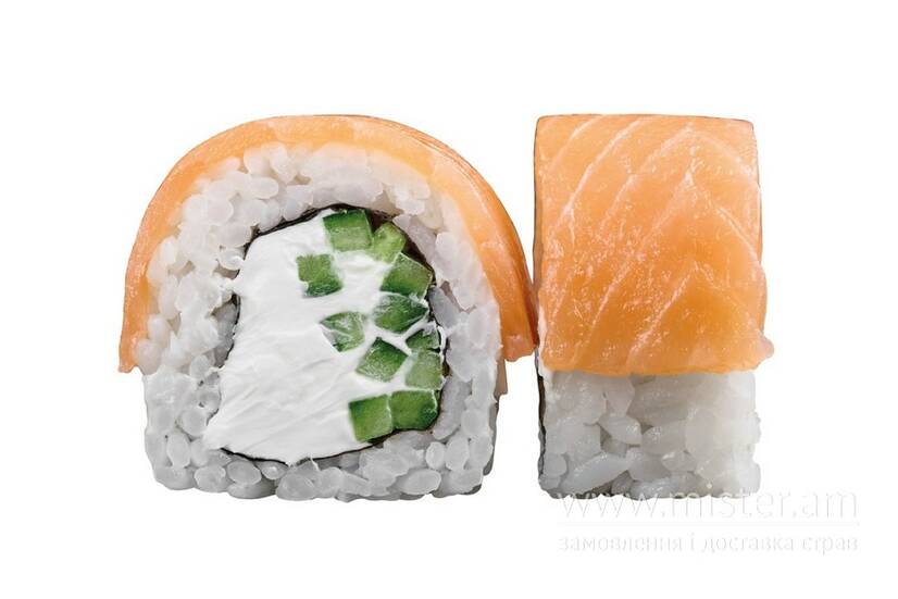 Рис, норі, лосось, огірок, сир Філадельфія.