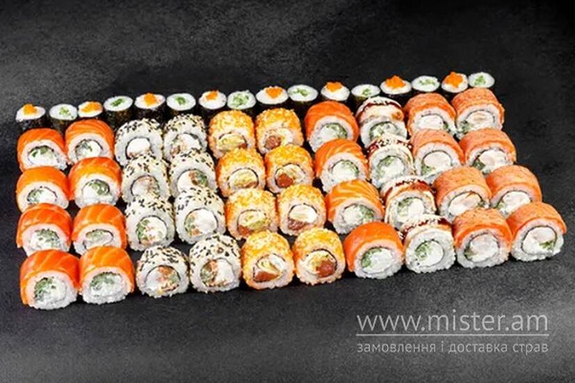 Філадельфія з огірком, Філадельфія Комбо, Королівська Філадельфія, Боніто з лососем, Рол Лосось Масаго, Філадельфія Макі, Макі огірок.
