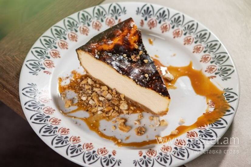 Ніжний вершковий чізкейк з солоною карамеллю та горіхами кешью.