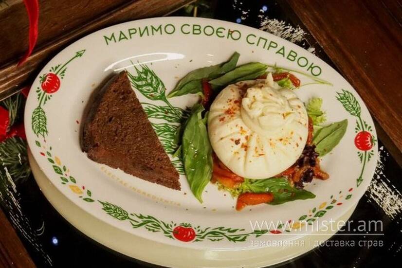 Крафтовий сир, який подаємо з солодовим хлібом та печеним солодким перцем.