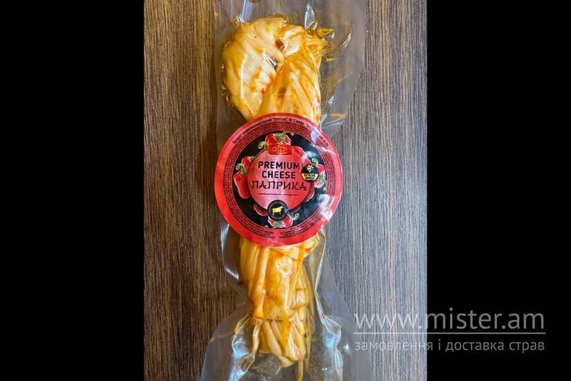 Сир косичка копчений Паприка - традиційний солоний сир, переплетений у вигляді косички, з ароматом натурального копчення та легкими нотками паприки.