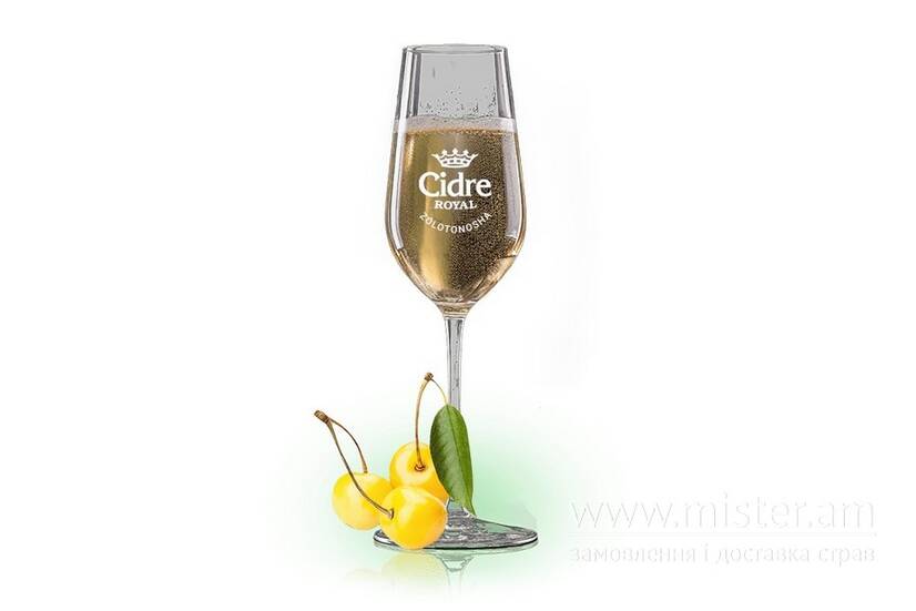 Сидр з насиченим ароматом білої черешні й легкими тонами яблук. Вміст алкоголю: 5%.